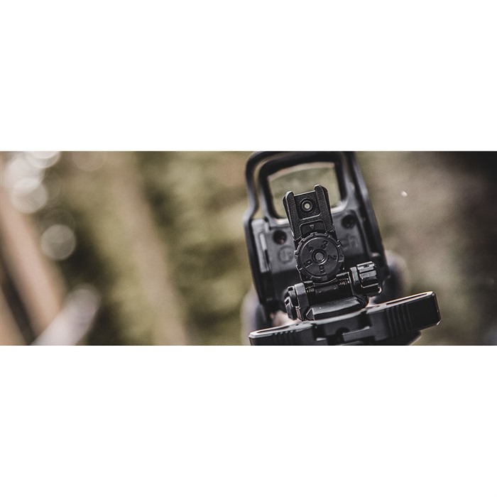 MBUS Pro LR er en robust og kompakt bakre sikte med justerbar høyde, laget av stål, som gir enkel tilpasning uten verktøy og maksimal holdbarhet.
