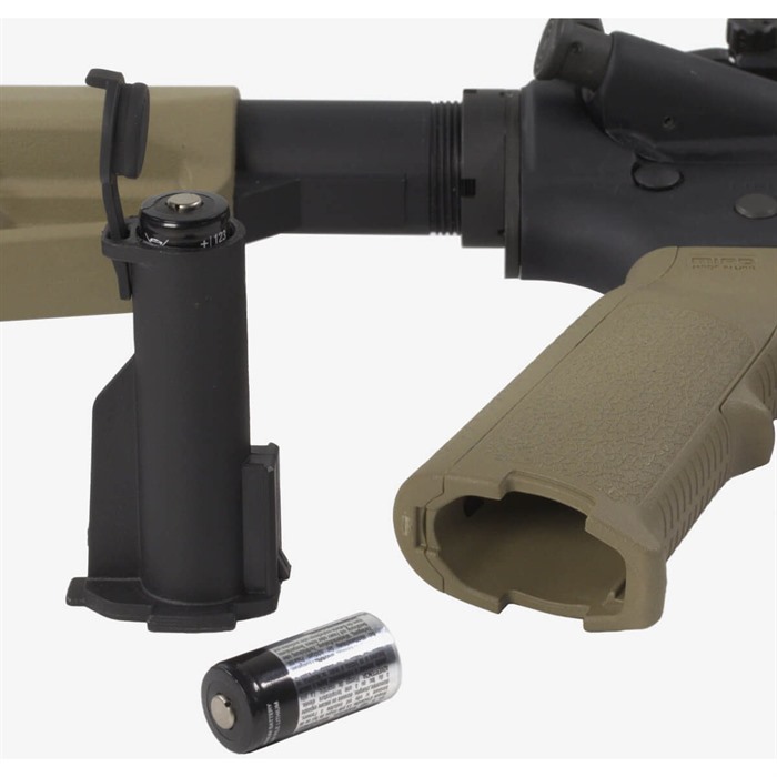 Further customize your MIAD grip to suit your specific needs with one of these interchangeable internal storage compartments. No tools or permanent alternations required. 123 Battery Core holds two, spare CR123 batteries in a sealed, waterproof compartment, keeping them ready for quick deployment if the batteries in your laser, light, or red dot sight fail.