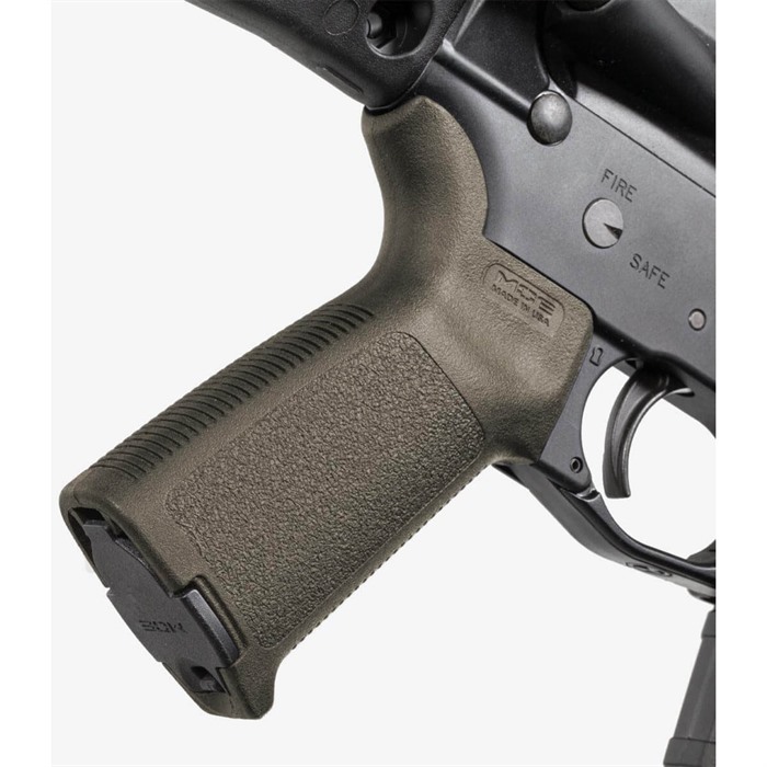 Magpul Original Equipment (MOE) grip is a durable, economical, easy-to-install replacement for factory pistol grip that gives the shooter a solid, secure grasp. Rigid, fully supported one-piece construction from the same reinforced, high-impact polymer as the MIAD grip, with crackle texture on the sides and deep horizontal grooves on frontstrap and backstrap. Curved beavertail similar to the MIAD B2 insert fills the grip-to-receiver junction to help you maintain a comfortable hold and protect the web of your hand during sustained firing. Compatible with Magpul MIAD Grip Cores and Enhanced Aluminum Triggerguard, available separately.
