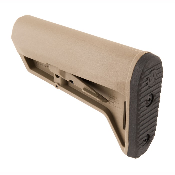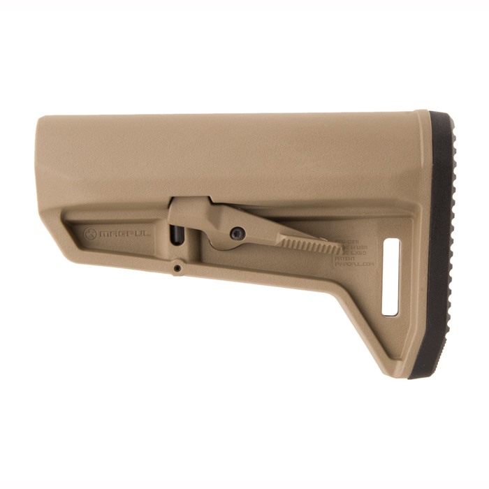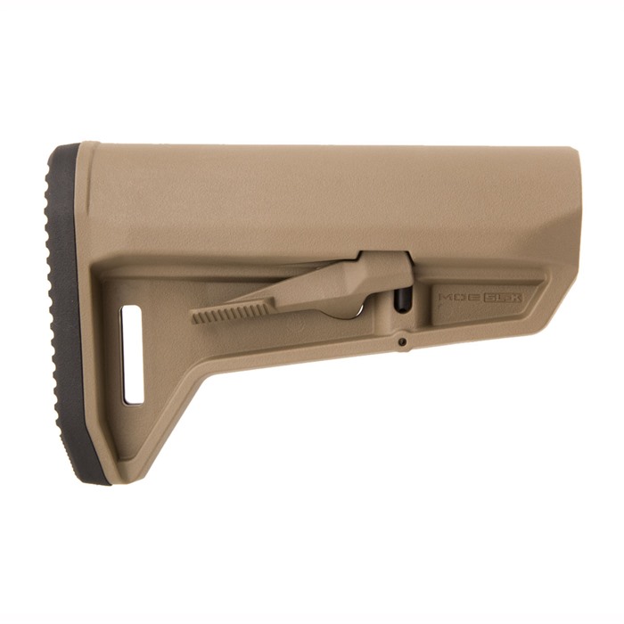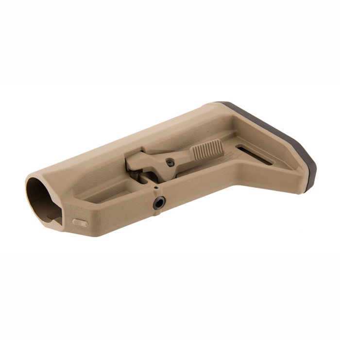 Further developing Magpul's original SL stock, the SL-K is designed for compact PDW-style weapons or users who simply desire a small, light, highly maneuverable stock. Drop-in replacement for M4-type adjustable stocks that fit mil-spec (1.14" O.D.) buffer tubes. It offers a short, slim profile, comfortably sloped cheekweld, a rubber recoil pad with a "rolled" toe for easy shouldering and better fit when wearing body armor. Built-in 1.25" sling loop, and also accepts Magpul ASAP® and M-LOK QD Sling Mount (available separately) for pushbutton QD sling swivels. Ambidextrous latch enables easy extension/retraction of stock, plus it minimizes rattle on the receiver extension without requiring additional locks, levers, or springs. Latch made of steel, too, so it won't fail under hard use.