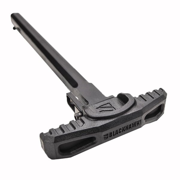 Blackhawk's No-Latch Ambidextrous Charging Handle is a drop-in peerformance upgrade for any AR-15 that gives the shooter full ambidextrous control for fast charging of the rifle or malfunction clearance. Using a leaf spring built into the handle itself, the innovative Blackhawk No-Latch Ambidextrous Charging Handle eliminates the need to squeeze that small latch found on the standard handle. Operate the handle from any position - left, right, standing, prone Oversized, overmolded polymer lever with aggressive grip texture Sturdy machined 7075 aluminum frame for long-term reliability The Blackhawk No-Latch Ambidextrous Charging Handle's oversized polymer lever enhances weapon control, yet easily clears low-set optics.