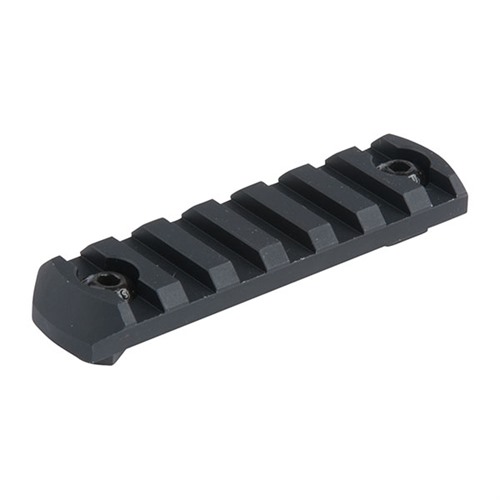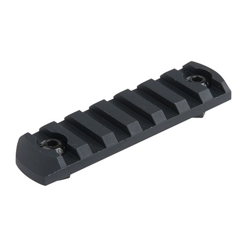 Compatible with all M-LOK handguards and forends, these rail sections allow you to attach 1913 Picatinny rail-mounted accessories to your weapon. Rail sections are available in either aluminum or polymer. Aluminum sections are machined from Mil-Spec anodized aluminum. Lightweight polymer sections are injection molded from a proprietary reinforced composite for enhanced strength and durability. Both aluminum and polymer rail sections feature beveled ends to eliminate sharp corners and edges, plus reduce snagging. Includes all necessary hardware for attaching rails to M-LOK slots on aluminum or polymer handguards and forends.