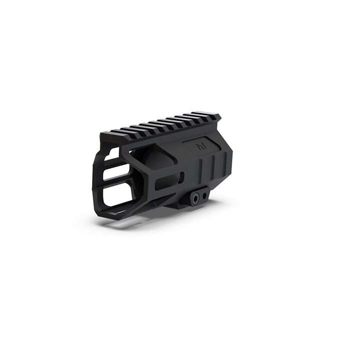 Den skeletoniserte designen reduserer så mye vekt som mulig uten å ofre integriteten til håndguardet. Alle kanter er faset, sandblåst, og deretter Type 3 Hardcoat anodisert for en glatt finish.