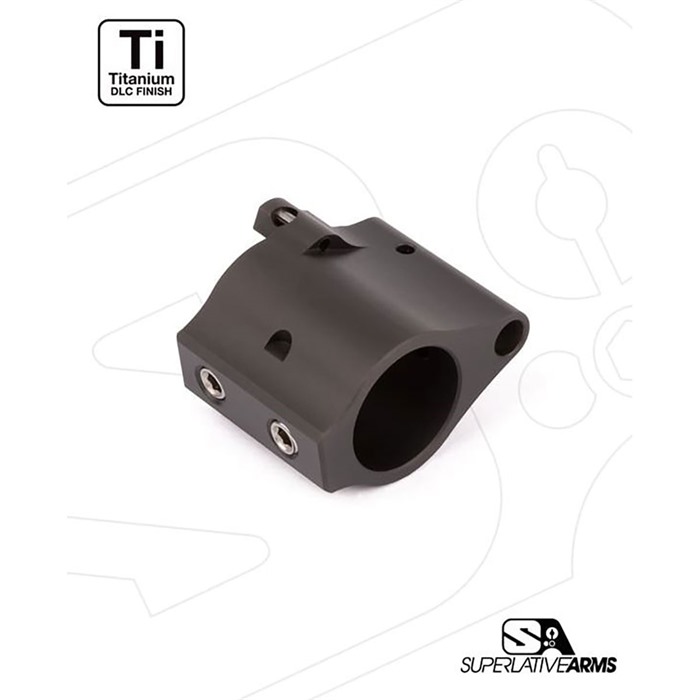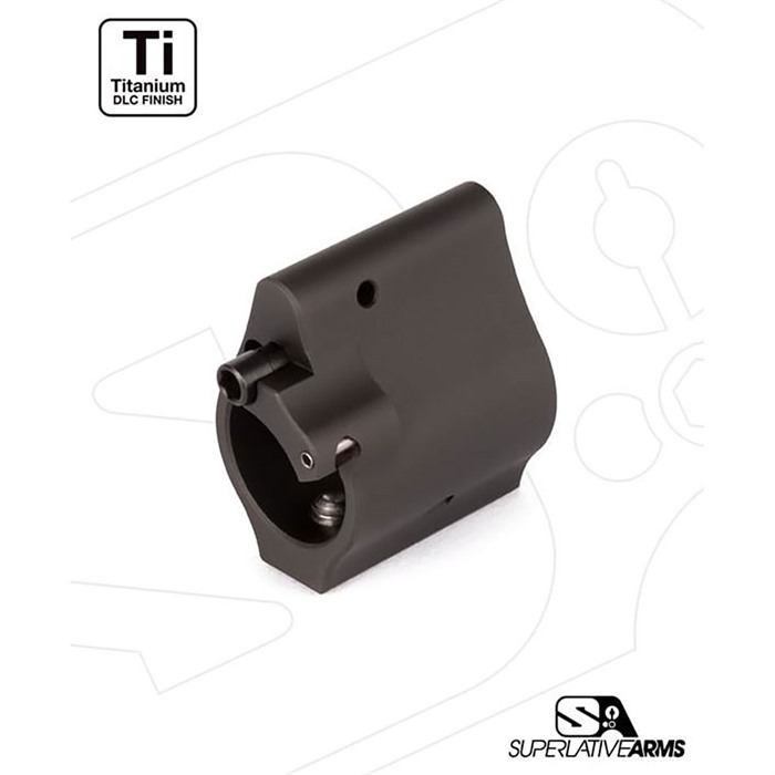 Superlative Arms patenterte “Bleed Off” gassblokk for AR15-plattformen justerer gassstrømmen ved å lede gassen ut av blokken, i stedet for å begrense strømmen som konvensjonelle justerbare blokker. Dette gir en renere og kjøligere drift.