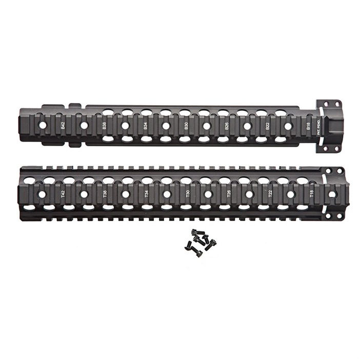 Den todelte, fire-skinne håndbeskytteren installeres enkelt og gir flattop mottakere en kontinuerlig 12 o’clock skinne. Den er designet for å festes direkte til standard løpeterminal.