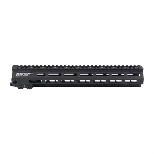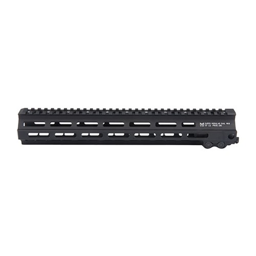 Ergonomic, lightweight modular rail system offers plenty of M-LOK attachment points along the entire length. Single piece assembly is machined from a semi-billet extrusion of aircraft grade aluminum for enhanced strength and performance to weight ratio. Free floating handguard attaches via long barrel nut machined from aircraft grade aluminum with a hardcoat anodized surface. Handguard fits tightly on the barrel nut and clamps securely by two cross bolt. M-LOK technology allows shooter to place accessory rails anywhere along the length of the rail in 45° intervals. Handguard has two standard, non-rotating QD slots on either side. Please note that a gas block is no longer included with these handguards.