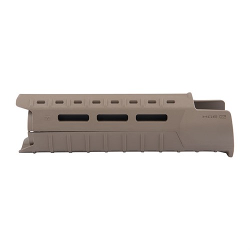 Reinforced, heat-resistant polymer hand guard is designed for carbine length gas systems with the triangular A2 front sight assembly. Easy to install handgaurd is a direct replacement for existing M4 carbine type hand guards and uses the existing delta ring and round front hand guard retaining cap. Slim profile improves weapon manipulation while the large, lower front lip and long side extensions protects the operator’s hand from hot sight assembly. Integral riveted aluminum heat shield provides added protection from barrel heat. Versatile handguard features M-LOK slots at the two, six, and ten o'clock positions permits mounting MIL-STD-1913 Picatinny rails or other direct-attach accessories.