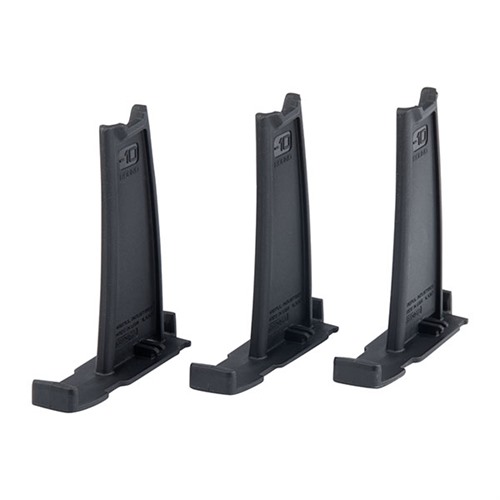 Det harde polymerinnlegget klikker på plass i bunnen av magasinet for å begrense kapasiteten. Installeringen er enkel og krever ingen verktøy, og det medfører ingen permanent endring av magasinet. Vær oppmerksom på at denne løsningen ikke gjør et forbudt magasin lovlig, ettersom kapasitetsreduksjonen ikke er permanent. Minus 10 reduserer kapasiteten med 10 runder.