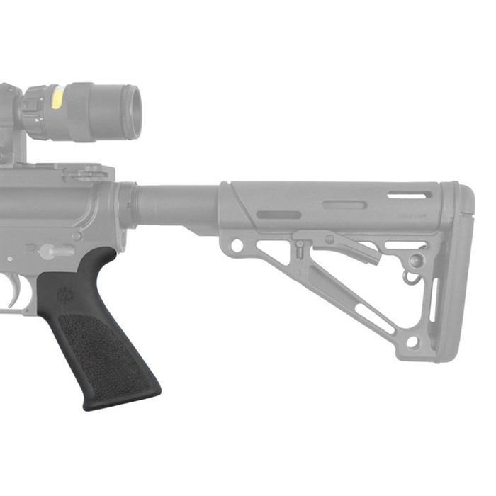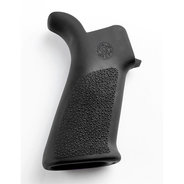 Dette AR-15 pistolgrepet fra Hogue har deres klassiske myke gummiovermolding over en fiberglasskonstruksjon. Det har en høy beavertail, ingen fingergroper og en teksturert finish.