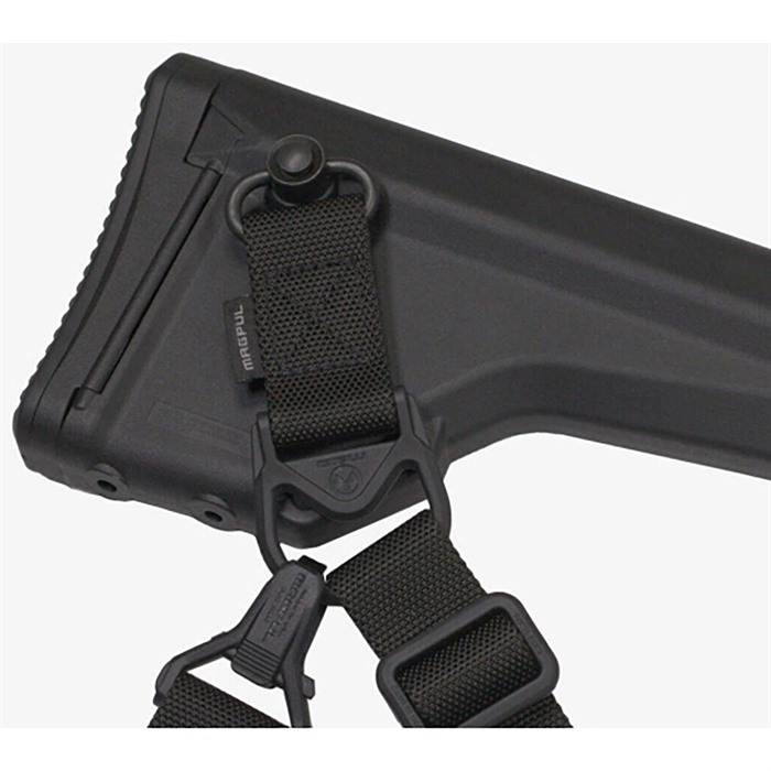 Magpul Sling Mount Kit – TYPE 1 kan enkelt festes på begge sider av SGA®, MOE® Rifle, MOE® Fixed Carbine, MOE® AK, Zhukov-S, Hunter 700 og Hunter X-22 stokkene for bruk med push-button QD Sling Swivels eller Magpul® QDM. Den slitesterke konstruksjonen i svart fosfatert stål gjør installasjonen enkel med medfølgende festemateriell.