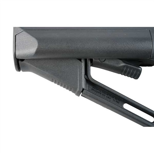 An enhanced version of the Magpul CTR® stock, the STR (“Storage/Type Restricted”) buttstock features two 4¼" left- and right-side positioned battery storage tubes and a wider cheekweld for extra comfort. Rubber caps at the rear keep the storage compartments resistant to water incursion, yet pop off easily for access to two AA or two CR-123 batteries inside. Features two integral 1¼" sling loops. Includes reversible QD swivel socket. Friction locking mechanism minimizes wobble between the buffer tube and the buttstock for a solid, secure "feel", which is enhanced by the detachable .30" thick rubber rubber that adds plenty of "grab" to prevent shoulder slippage.