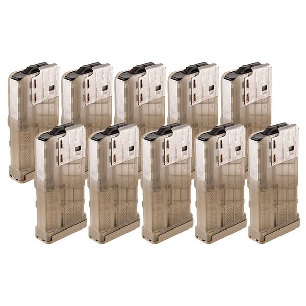 When they set out to develop a tough and reliable .308 polymer magazine on the market, Lancer took engineering inspiration from the L5AWM (5.56) and the SIG Sauer MPX, combining the best advances of both to bring the L7AWM 7.62X51mm magazine to life. The L7AWM is lightweight with steel feed lips that wrap completely around the magazine to maximize stiffness and reliability while preventing dimpling to the front of the magazine. A switchable drain lock in the floor plate comes standard on all L7s, allowing users to configure the magazine for either water-borne or extreme dust conditions. The L7AWM is designed to work in multiple weapon systems.