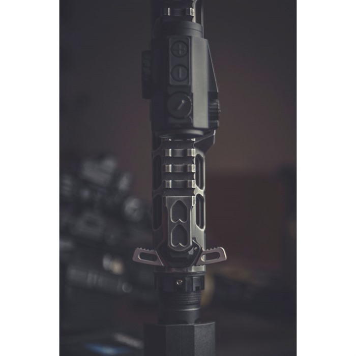 Den nye MOD2-designen har forbedringer for ytterligere å redusere gassutblåsning mot skyterens ansikt. Lettelsesskjæringene på toppen og bunnen av stammen er designet for å hjelpe til med å lede ekstra gass ut til siden og bort fra ansiktet ditt. For all gass som klarer å gå rett bakover, har vi økt høyden på hyllen for bedre dekning av baksiden av overbygget. Disse modifikasjonene bidrar til å forbedre skyteopplevelsen, spesielt når du skyter med demper!