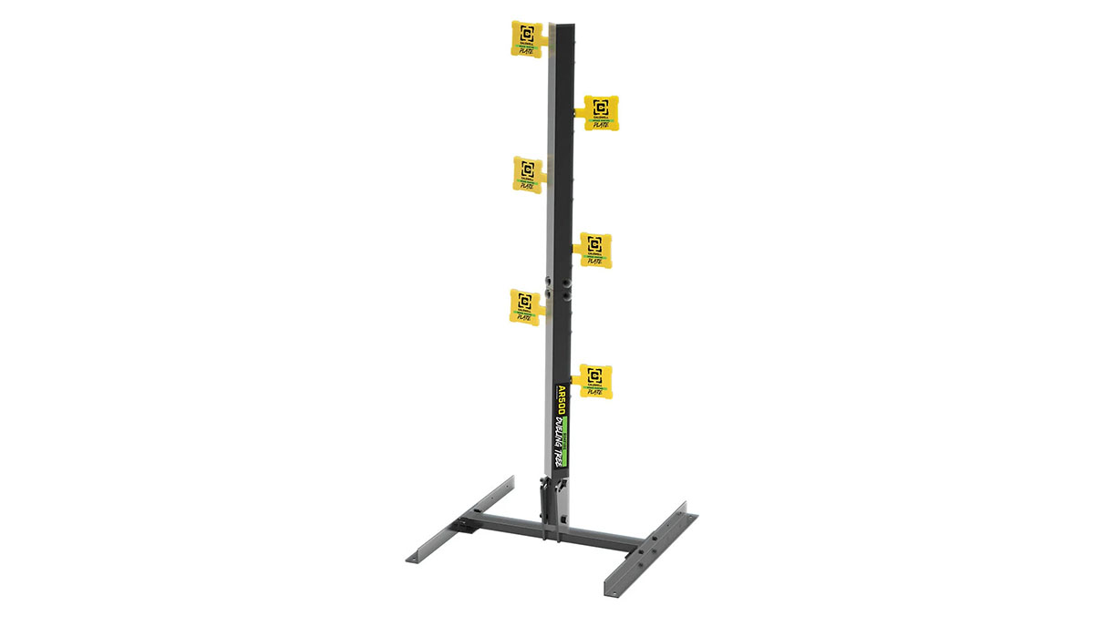 198700005675 The Caldwell AR500 Rimfire Dueling Tree is the perfect way to compete with friends or practice solo on nearly any range. Each shot causes the six reactive targets to pivot from side to side around the center post, providing instant feedback and fun. The 4" square targets are made from durable AR500 steel, designed for popular rimfire cartridges like .22LR, .22WMR, and .17HMR. A sturdy 24" x 24" base with an adjustable center post angle ensures stability on uneven terrain and allows the targets to handle different impact energies reliably. Bring the challenge to your next shooting session with the Caldwell AR500 Rimfire Dueling Tree.