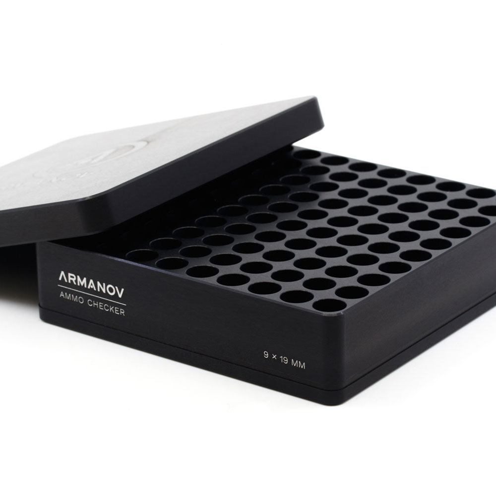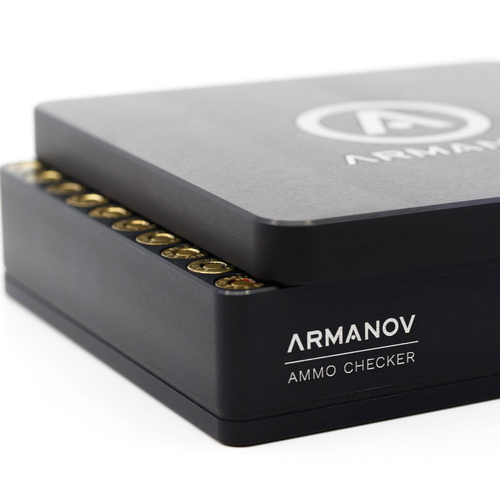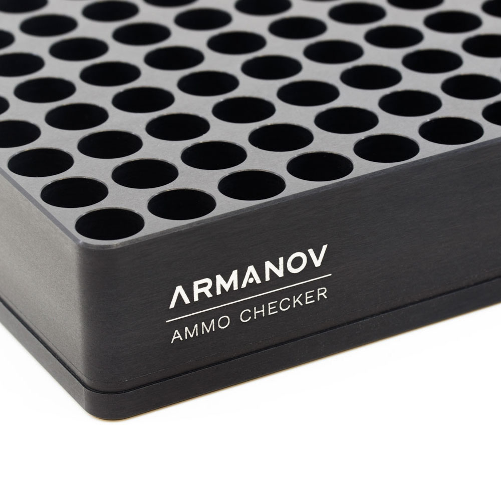 Mange sportskytere lader sin egen ammunisjon, og derfor er det viktig å sjekke ammunisjonen for konsistens, spesielt før konkurranser. Armanov Ammo Checker er maskinert fra aluminium av høyeste kvalitet, med lommer som er ferdigbehandlet ved hjelp av en spesiell reamer laget for strenge CIP-toleranser. Høyden på Gauge Box er presis maskinert til den maksimale totale rundelengden for den respektive kaliber, noe som hjelper med å finne runder med utilstrekkelig setted kuler.