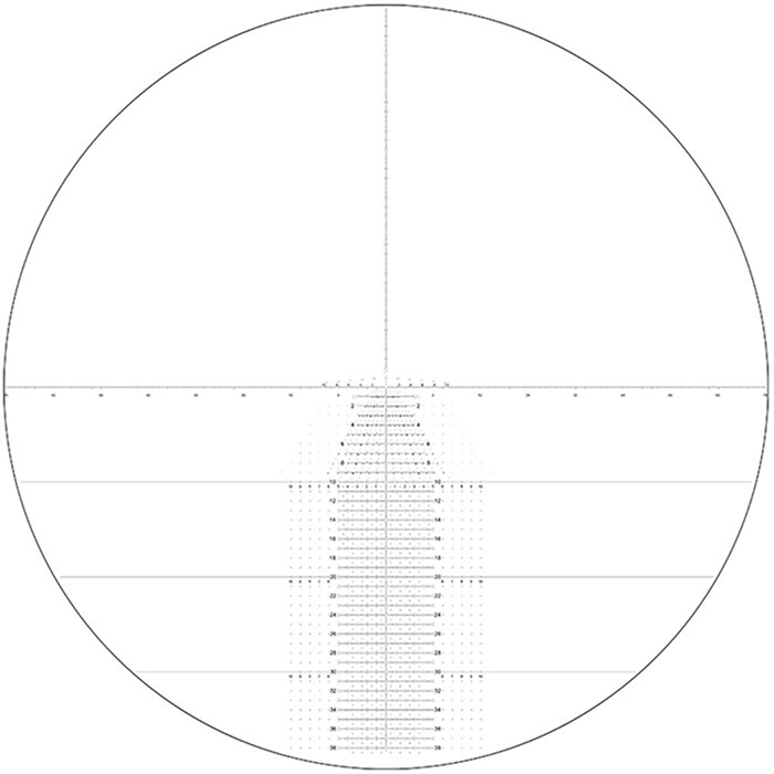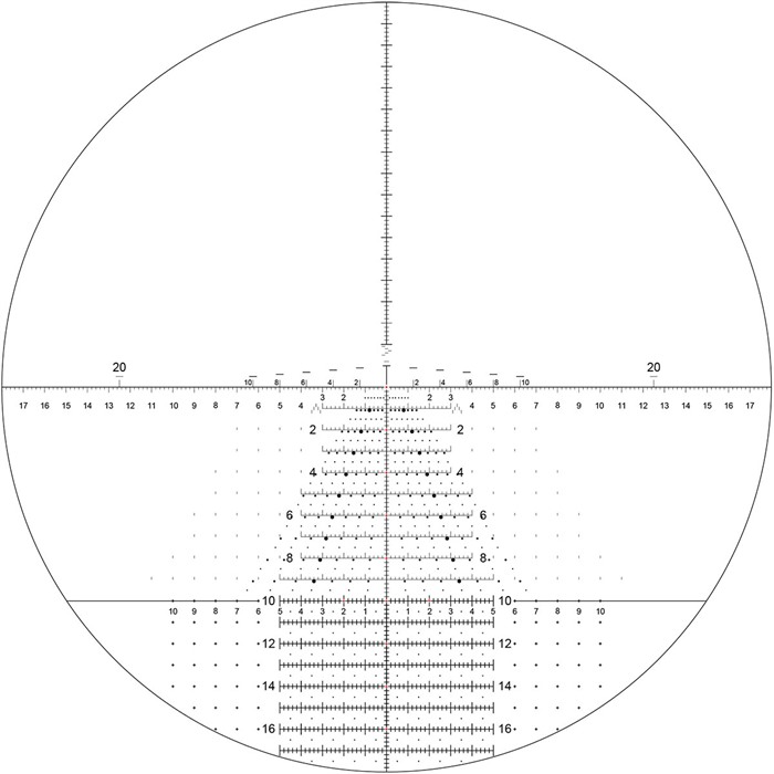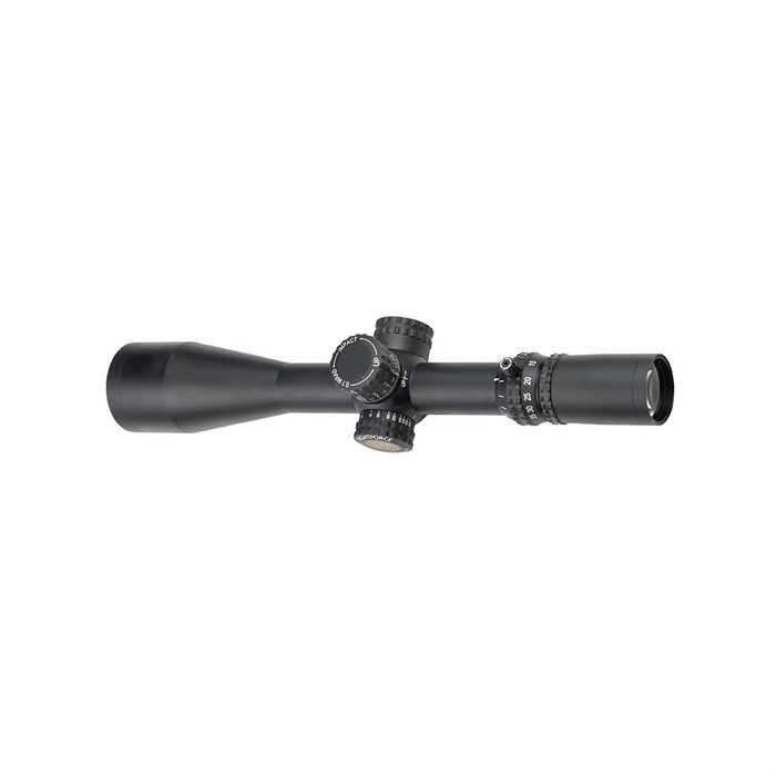 - Første fokalplan (F1) retikkel som sikrer presise avstandsmålinger og raske justeringer.