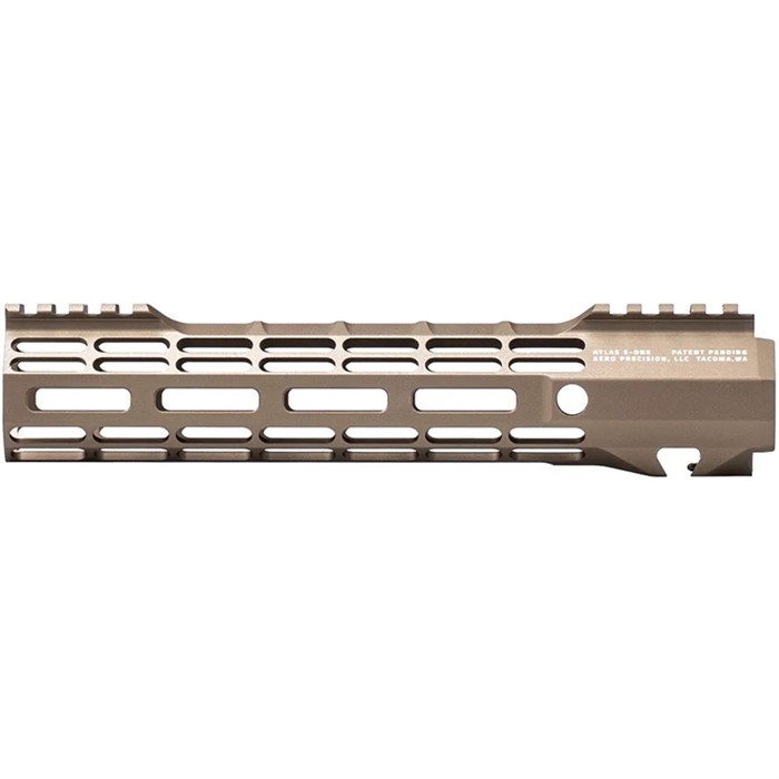 The ATLAS S-ONE is the newest addition to the Aero Precision Handguard lineup. Machined from 6061-T6 Aluminum, the S-ONE line of handguards are designed with size and weight in mind, providing the perfect handguard for your lightweight build. Aero's proprietary ATLAS attachment system is a durable and dependable mounting platform, maintaining a slim profile while still providing the strength and stability customers have grown to love from Aero Precision handguards. Actual Handguard Lengths: 7.3", 9.3", 10.3", 12.7", 15" -- Aero Precision rail lengths measure from end to end. This is the point of contact at the receiver to the end of the last picatinny slot at the muzzle. Available in M-LOK profiles with 7.3", 9.3", 10.3", 12.7" and 14.94 (Actual Length 15") options. ATLAS The new Aero Taper Lock Attachment System (ATLAS) is both functional and aesthetically pleasing. It features 2 mirrored tapered locking nuts that provide evenly distributed clamping pressure across a custom engineered barrel nut with use of a turnbuckle screw. A ratcheting detent further secures the design while providing positive registration during installation. By design, the even pressure of the ATLAS system avoids distortion of the handguard often seen with current applications during installation. All hardware mounting parts are included with the purchase of an ATLAS Handguard. LIGHTWEIGHT BY DESIGN M-LOK Handguard Weights: 7.3" - 4.86 oz / 9.3" - 5.47 oz / 10.3" - 6.0 oz / 12.7" - 7.00 oz / 15" - 7.95 oz Mounting Hardware Weight: 1.9 oz (same across all S-ONE Handguard options) FEATURES: Front and rear picatinny rail Eliminated center of top rail for weight reduction Indexing grooves in 12:00 position for positive grip control Quick disconnect sling socket at the 3, 6 and 9 o'clock positions Compatible with low profile gas blocks 1.3" Inside diameter 1.5" Outside diameter Compatible with mil-spec AR15 upper receivers and barrels NOT Compatible with M4E1 Enhanced Upper Receivers ATLAS Handguards are designed to match seamlessly with Aero's M4E1 Threaded Upper Receivers. Additionally, they are compatible with any Mil-Spec AR-15 upper receivers as well. However, they may not be compatible with billet upper receivers due to indexing tabs. Save when you buy them as a combo. Please note: The ATLAS Handguards are NOT compatible with Aero's M4E1 Enhanced Upper Receiver.