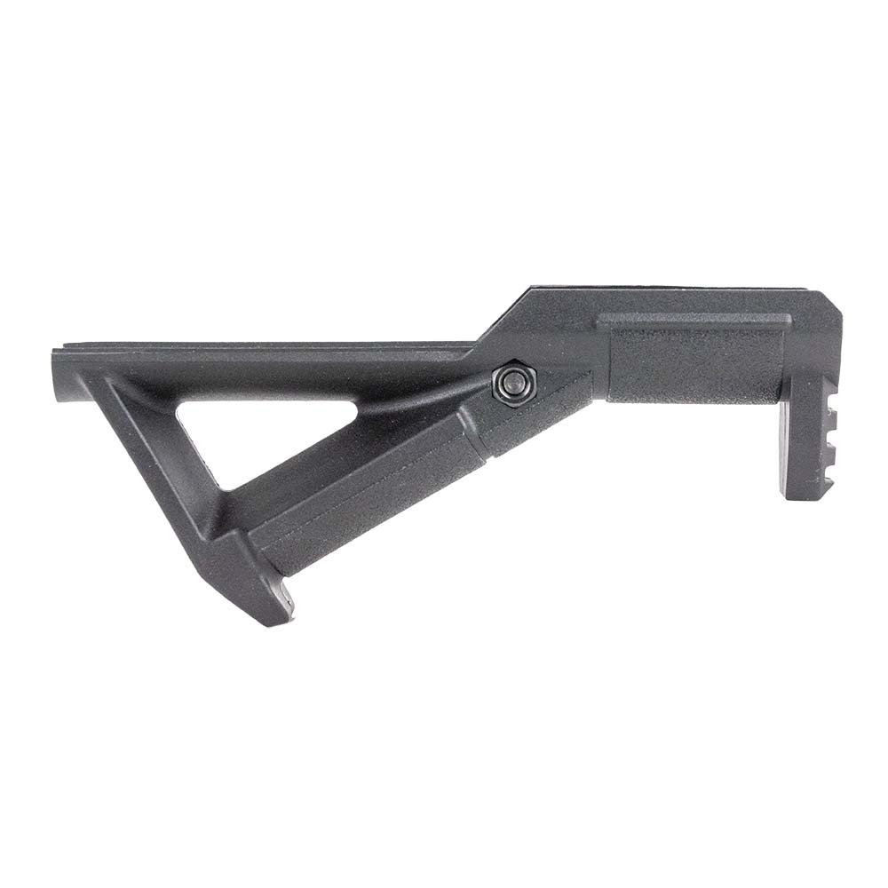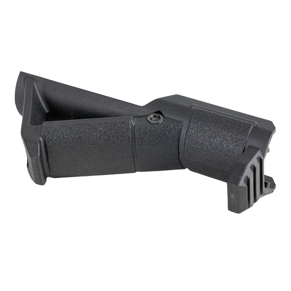 This lightweight, flat grip assists the shooter in achieving a comfortable grip with a natural finger placement, a pronounced hand stop at the rear, and a non-slip, textured surface that keeps the hand in place even in wet conditions. The serrated front allows the shooter to brace the rifle against barricades, rock outcroppings, or other available surfaces, creating a reliable shooting platform without worrying about slippage.