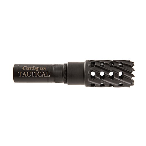 The New Carlson’s Tactical Muzzle Brake choke tube features a porting designed to reduce recoil significantly. This new choke tube is manufactured from 17-4 Heat Treated Stainless Steel in Extra Full constriction. The Extra Full choke tube can be used with all Hevi-Shot and lead loads (but is not to be used with slugs and cannot be used with any Steel shot larger than #2 or with any Steel shot faster than 1550FPS). The Extra Full constriction is also an excellent choice for hunters using larger shot sizes for coyotes, wild hogs and deer. The NEW Tactical Choke Tube has a head that extends approximately 2.75” beyond the end of the barrel and features a matte black finish. The addition of this new choke will not only make any ordinary shotgun look extraordinary, but also significantly reduce recoil allowing for better control of your firearm and quicker follow-up shots. Perfect for Law Enforcement or Home Defense. These chokes are proudly made in the USA and feature Carlson’s lifetime warranty.