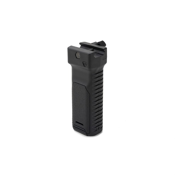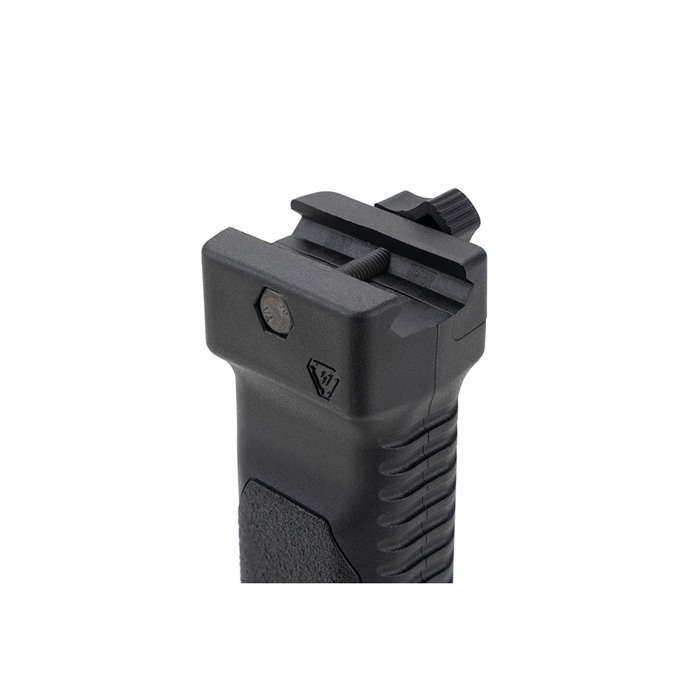 Grepvinkelen sitter på håndtaket med 89 grader. Den er designet med teksturerte områder for håndflate og fingre, samt flate sider for bedre håndtering og enklere manipulering av våpenet. Laget av holdbar og lett polymer, gir Strike Bipod Grip deg to nyttige verktøy sammen for å spare plass på skinnene uten å legge til betydelig vekt til en rimelig pris.