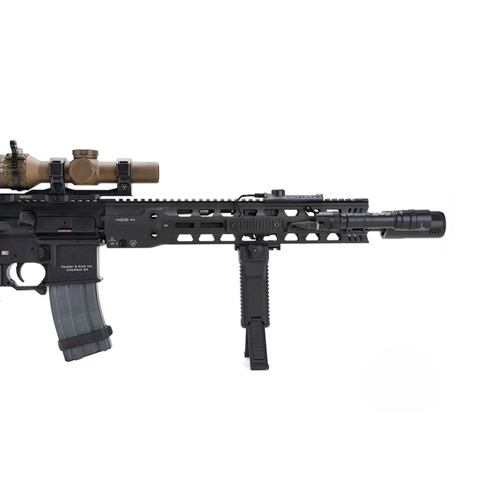 Med ulike skytesituasjoner og scenarier er det mange fordeler med et tilbehør som både fungerer som grep og bipod. Enten du må navigere i en bygning under Close Quarters Battle (CQB) eller ligge nede for å ta mid- til langdistanse skudd, vil denne bipod grep-kombinasjonen være til stor nytte for deg.