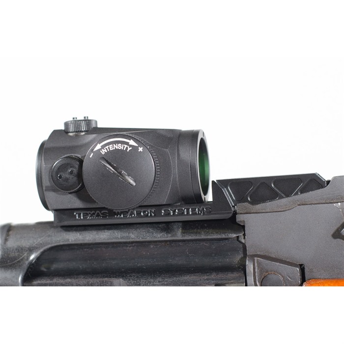 Texas Weapon Systems Bitty Dot Mount™ (BDM) – smallest, lightest, beefiest, little red dot mount you can buy! This tiny little mount is engineered with big features for superior performance and rugged durability. Product Details Large front tab with girder design is super stiff yet very light (just 1.3 oz) Integral rear sight follows original AK design Lowest possible optic mount surface for lower 1/3 co-witness Solidly attaches to sight block with the proven nut plate from the G3 DogLeg™ rail Single larger bolt secures the system, no tiny screws to strip out 6061-T6 Aluminum with matte hard black anodize finish Easy installation / no permanent mods required Lifetime warranty 5 slot Picatinny Rail and is compatible with low profile red dot sights. Fits Russian and Yugo pattern AK rifles with standard rear sight block. Kit Includes Sight Mount Hinge Pin with E-clip Nut plate 8-32 x 5/16 socket head cap screw Instructions BDMO: Has a 5 slot Picatinny Rail and is compatible with low profile red dot sights. BDM1: Compatible with the Aimpoint Micro, Primary Arms, Holosun, Vortex Sparc, and other micro clone variants. BDM2: Compatible with the Trijicon MRO. BDM3: Compatible with Doctor, Burris FF, Vortex Viper/Venom. BDM4: Compatible with the Trijicon RMR.
