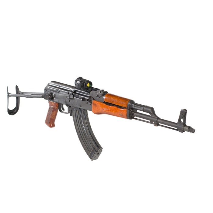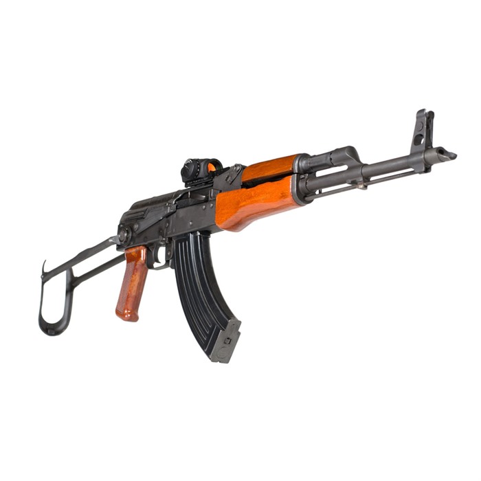 - Integrert bakre sikte følger den originale AK-designen