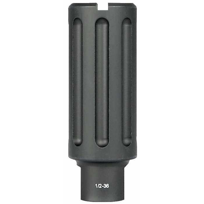 Directs muzzle blast forward on short barrel rifles and pistols. Does not reduce recoil or flash. Constructed from 6061 aluminum, and hardcoat anodized for a lifetime of service 1/2-36 threads for 9mm AR type pistols and rifles with 1/2-36 barrels Includes new crush washer Overall length 3.375 Outside diameter 1.2 Weight 3.2 oz 100% made in the U.S.A. Note: Will not work with barrels that do not have ½-36 threads