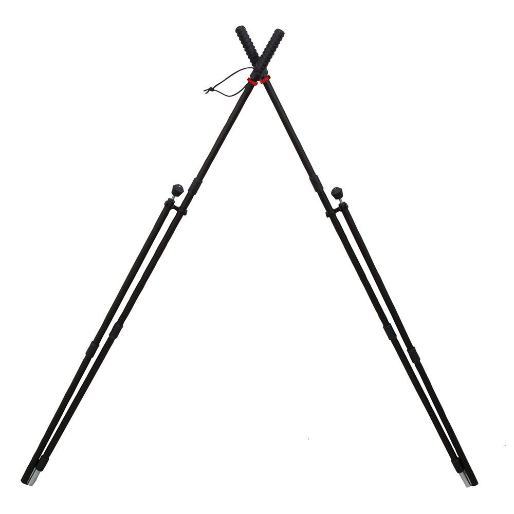 729806355656 Dead Silent Shooting Sticks gir den samme pålitelige BOG-POD® stabiliteten og holdbarheten til en sammenleggbar skytestang. DSS er laget av robust 9/16” dia. aluminium og værbestandige overflater som ikke skader. Klippene for å holde benseksjonen er flyttbare og justerbare, slik at skytteren kan brette og feste en benseksjon til skytestangen. Dette justerer plattformen til en lavere høyde og holder de sammenfoldede benseksjonene sikre og ute av veien under transport.