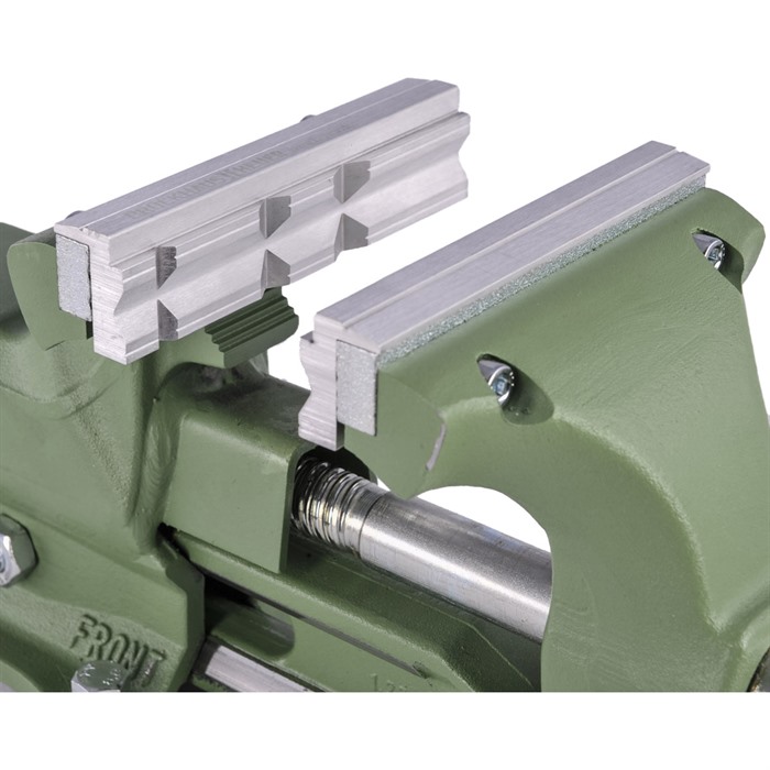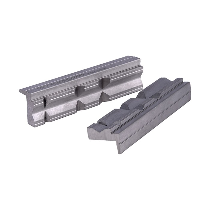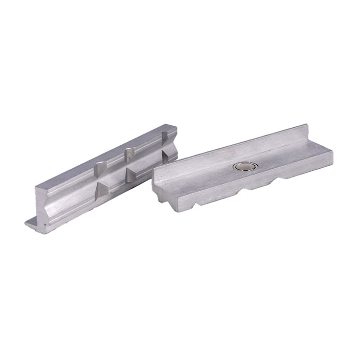 Disse kjeveinnleggene er laget av lett, men sterk aluminium, og holdes på plass av kraftige sjeldne jordmagneter. Den aluminiumsbaserte materialet forhindrer magnetisering av stålkomponenter som holdes i kjevene.