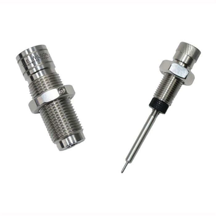 Wilson Bushing Type Full Length Sizing Die er en utmerket løsning for de som ønsker å justere hylsehalser til ønsket nakkespenning, samtidig som resten av hylsekroppen størres. Denne dies inkluderer en justerbar dybde av dekapperstang, samt en ekstra dekapperstang.