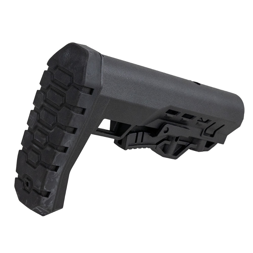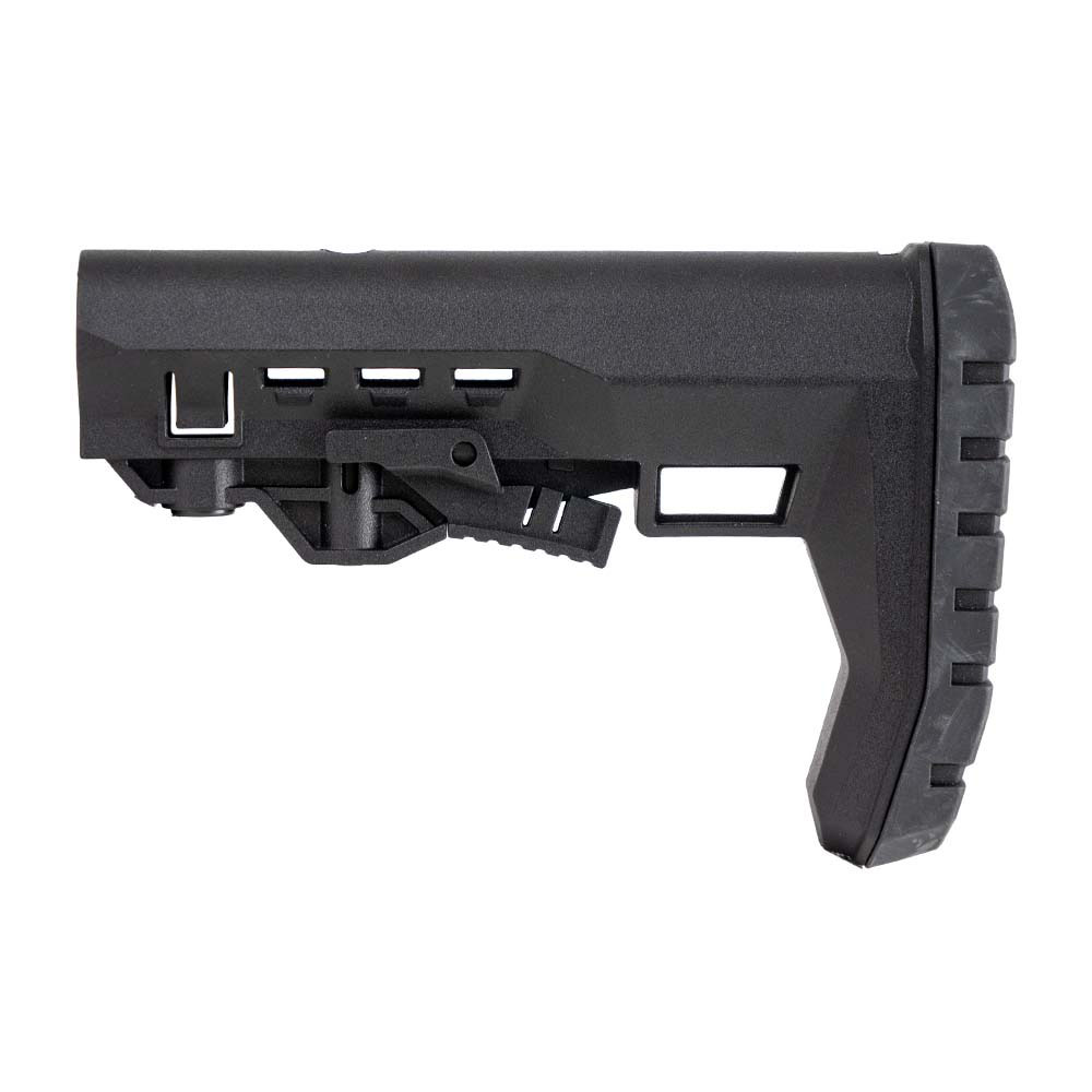 Breacher AR-15 Mil-Spec Stock prioriterer din skyteopplevelse, selv når du har på deg kroppsrustning. Den skrå gummibuttpaden og de doble frigjøringslåseknappene er spesialdesignet for å legge til rette for effektive skulderoverganger og gi en sikker og stabil skyteplattform.