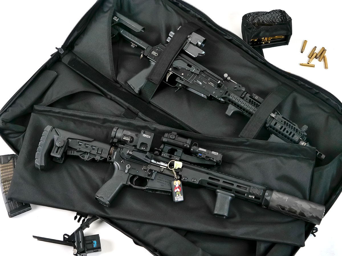 Den rommer komfortabelt to pistoler, med enkel tilgang gjennom D-ring trekkfliker og store polstrede ermer. I tillegg er det rikelig med ekstra plass til alle tilbehørene dine, noe som sikrer at alt holder seg organisert og klart for action.
