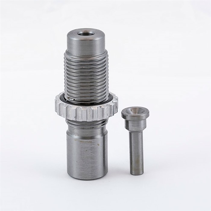Spesiell merknad: Beregnet for bruk på enkeltstående presser kun. Push through Punch brukes i stedet for en Shell Holder i Ram. Lee lager ikke toppstempler for former. Med bruk av dette settet er ikke et toppstempel nødvendig.