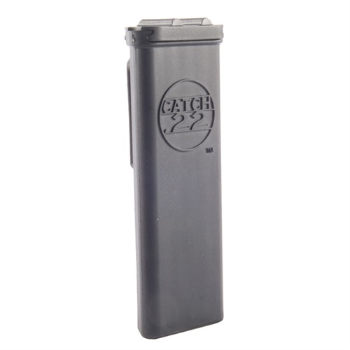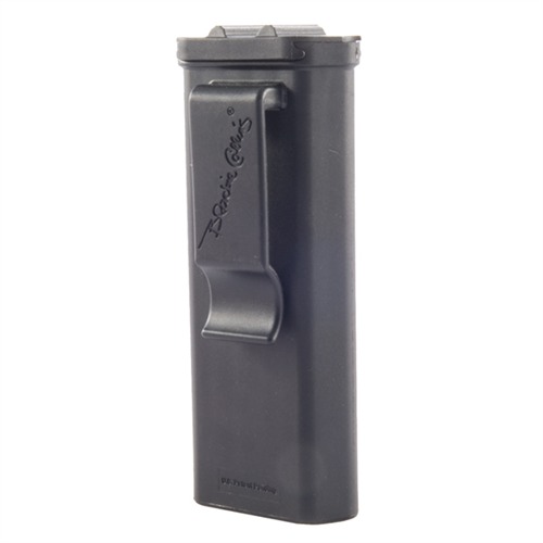 Convenient storage dispenser holds 50 rounds of .22 LR ammo for fast, easy, reloading of tubular magazines. Clips to your belt and keeps rounds clean and ready for instant access—no more fumbling for loose ammo in your pocket. Prevents dirt, dust, and debris from contaminating lubricated bullets and damaging your rifle bore. Each of the 10 staggered, top-loading “silos” holds five rounds. Grooved detents let you slide the lid open to expose one silo at a time and dump the rounds into the mag tube.