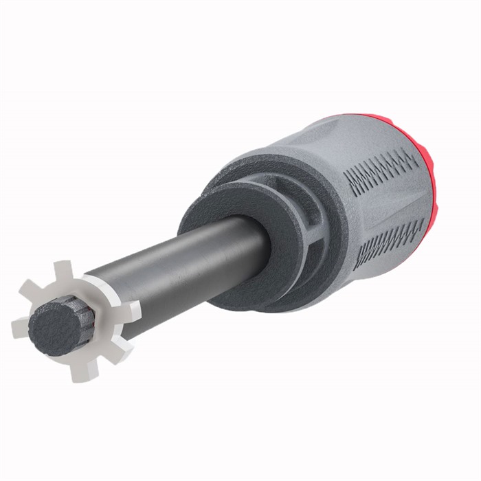 Håndtaket sentrerer seg selv inne i overdelen for å perfekt justere med løpet for hylseforlengerne. Du kan enkelt spinne håndtaket mens du gjør presis kontakt med alle redskapene inne i kammeret.