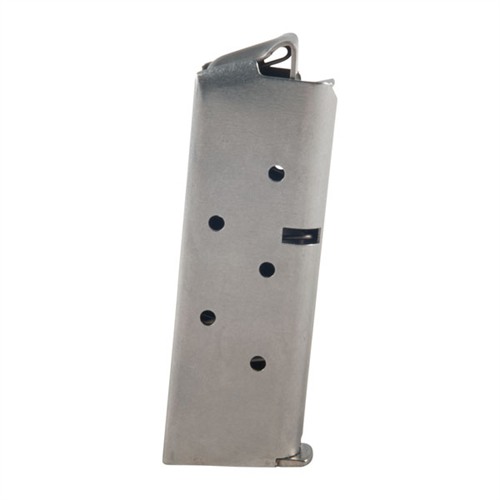 These magazines from Metal Form fit the Colt Mustang, but NOT the Mustang Plus 2. Made from brushed stainless steel, they come with and without a finger extension. Stainless Steel construction Five sight holes per side Stainless Steel follower Fits Colt Mustang only. Will not fit Sig P238 or others. Colt Mustang style magazine features a welded floorplate