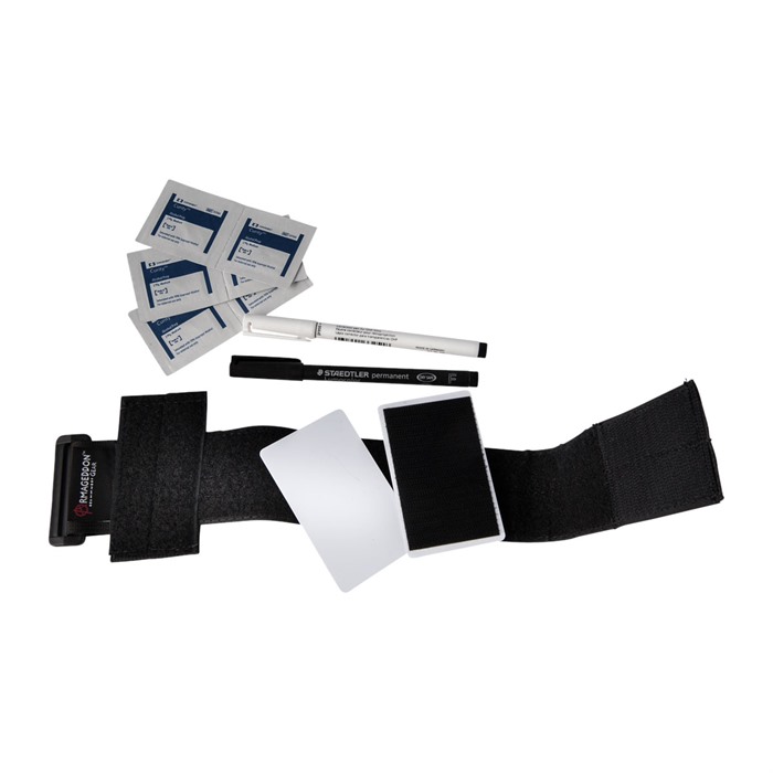 Armageddon Gear Competition Data Armband Kit er et robust og feltklar bærebar notatbrett som lar skytteren raskt skrive notater om målarrangementer, avstander, skudddata eller poenggiving. Permanent markør sitter godt under feltbruk, selv i regnfulle forhold, men kan enkelt fjernes med alkoholpen, hånddesinfeksjon eller alkoholservietter. Sett inkluderer Competition Data Armband, to armplater, svart alkoholmarkør og alkoholviskerpen. Competition Data Armband Kit kan ikke gjøre deg til en bedre skytter, men i det minste vil du se bra ut når du bruker det. Armageddon Gear bruker kun materialer av høy kvalitet laget i USA, og hver del er designet for å tåle hard bruk. Tilgjengelig i svart. Som alt annet Armageddon Gear lager, er Competition Data Armband Kit stolt laget i USA.Leveringstid ca. 14-21 dager.