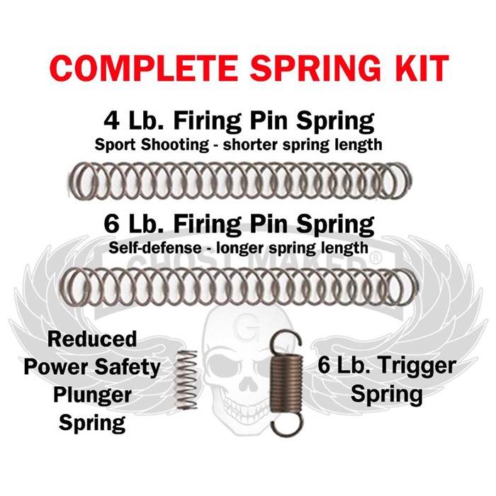 GHOSTs COMPLETE SPRING KIT gir deg alle fjærene du trenger for å tilpasse avtrekksvektene dine for både sportsskyting og selvforsvar. Dette settet inkluderer:
