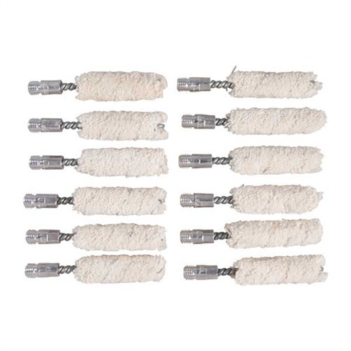 Bomullsfiber suger virkelig opp rengjøringsmidler og olje. Den naturlige skrubbingseffekten av bomull bidrar til å fjerne løsnet kruttforurensning. Disse moppene er perfekte for påføring av Brownells Moly Bore Paste eller J-B® Compound.
