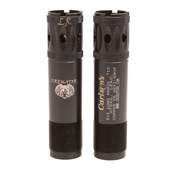 Carlson’s Cremator® Choke Tubes tilbyr den nyeste Triple Shot Technology (TST) og er tilgjengelig i korte, mid-range og lange konstringer. TST er en serie med tre graderte ringer i taper-seksjonen av choke-røret som muliggjør en mer gradvis overgang fra haglebor til den endelige konstringen.