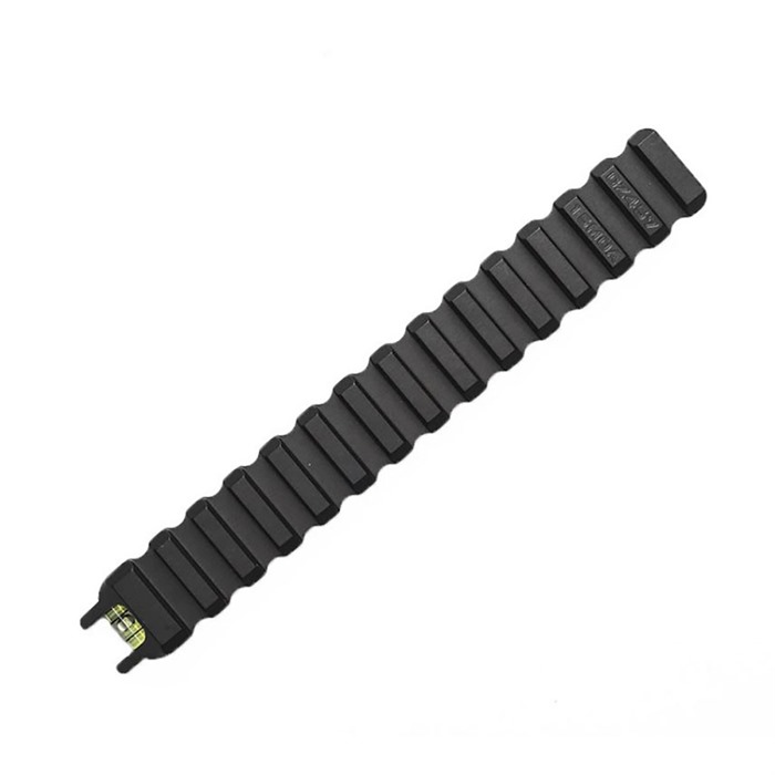 - Det innebygde nivået kan enkelt sees bak på skinnen uten å måtte fjerne hodet fra stokken for å ta et skudd.