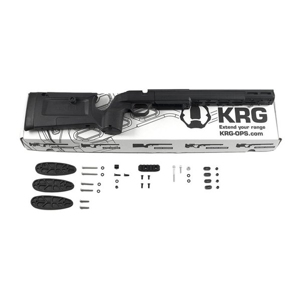 Bravo Chassis Rimfire: The CZ-457 variant of the Bravo Chassis provides you with the essential chassis benefits combined with conventional target/varmint ergonomics all at a modest price The Bravo is one of the most comfortable stocks available but that's just the beginning. The price will make you and your wallet overjoyed. The precisely machined bedding area will put your action in its happy place nearly like it was custom bedded in there. The full length stiff aluminum backbone will not allow the forend to flex on you but does allow design modularity with loads of accessories and even other KRG chassis. The ergonomic adjustments are just what you need to fit your frame so you can pull off the difficult shots. It's light. It's comfortable. It's modular. It's good looking. And it's practically free. You will love it. Utilizes factory rimfire mags (Not included).