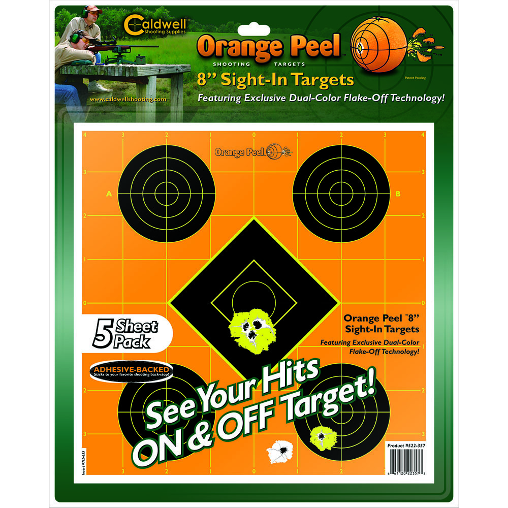 Få presisjon med Orange Peel® Targets fra Caldwell®! Med Orange Peels kan du se treff både PÅ og OFF målet takket være dual-color flake-off teknologi som får treffene dine til å se ut som fargerike eksplosjoner. Hvis skuddet ditt tilfeldigvis treffer utenfor blinken, vil du umiddelbart vite akkurat hvor kula havnet.