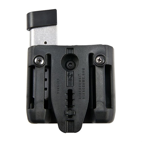 The Blackhawk Double Mag Case features a built-in tension spring that securely holds two single stack magazines of various sizes. It features an adjustable belt-clip hook that accommodates belts of different widths. Features a built-in tension spring to securely hold magazines of various sizes Includes belt loops and adjustable belt clip Curved to waistline for slimmer profile Fits 9mm/.40 cal/.45 cal/10mm/.357 Sig