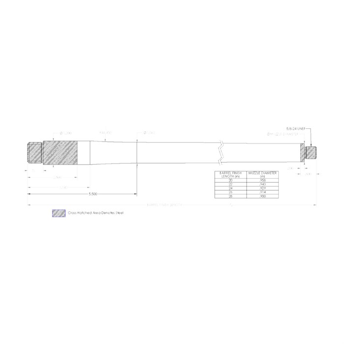 Barrel Weight: 2.688 lbs Contour: Sendero Finish: Carbon Steel Kaliber: 308 Winchester Lengde: 20'' Muzzle Threads: 5/8-24 Twist: 1-10 Produktnr.: 430101241