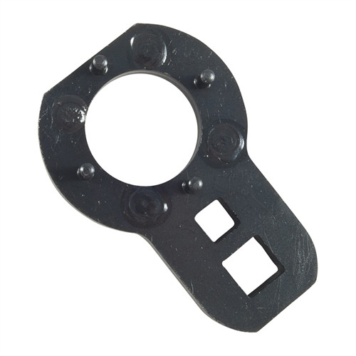090222549838 Barrel Nut Torq Wrench for DPMS & KAC Rifler. Dette verktøyet gjør det mulig for skytten å påføre nøyaktig mengde trykk på barrel nut mens løpet festes til mottakeren. Konstruert av 3/8 høykvalitets stål med 4 lugs på hver side for å imøtekomme DPMS og KAC Barrel Nuts. Fungerer med enhver 3/8 eller ½ drive momentnøkkel. Dette verktøyet er for 24-tann friflytende barrel nuts.Leveringstid ca. 2-4 dager.