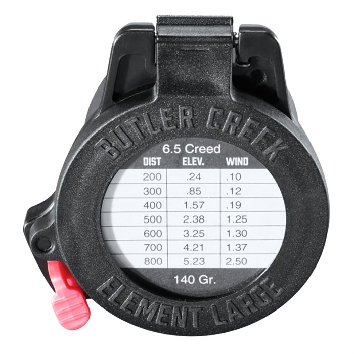 051525000280 Butler Creek Element Scope Caps er svært robuste med et multifleksibelt deksel. Det utskiftbare dope-disken for objektivet gir informasjon om vind og høydejustering.Leveringstid ca. 14-21 dager.