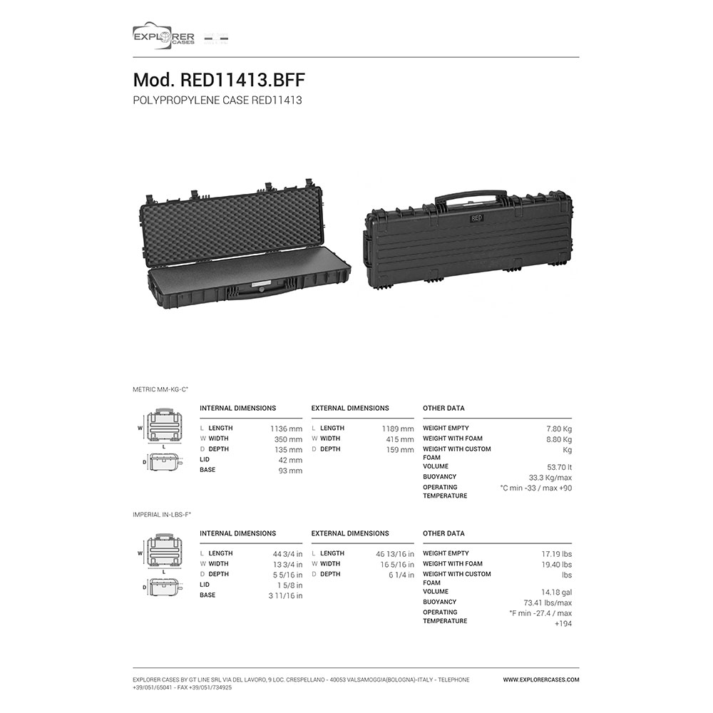 RED 11413, EXPLORER CASES Red 11413 BFF - Density Full Foam er den perfekte løsningen for å sikre dine våpen med høyeste kvalitet. Produsert av Explorer Cases i Italia, gir denne våpenkassen en rekke funksjoner som gjør den uunnværlig for enhver våpeneier.