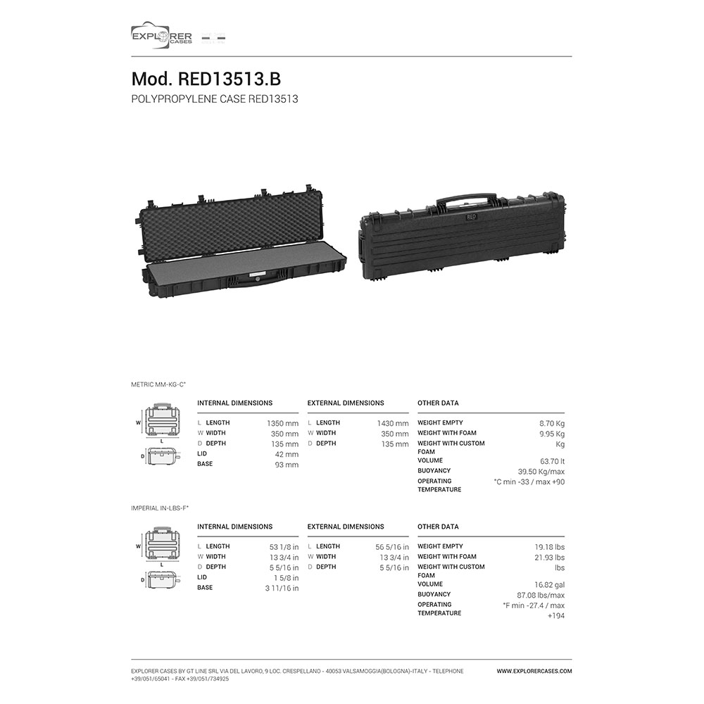 RED 13513, EXPLORER CASES Red 13513 B - Pre-Cube Foam er den ultimate våpenkassen med en rekke funksjoner i høyeste kvalitet, produsert av Explorer Cases i Italia.